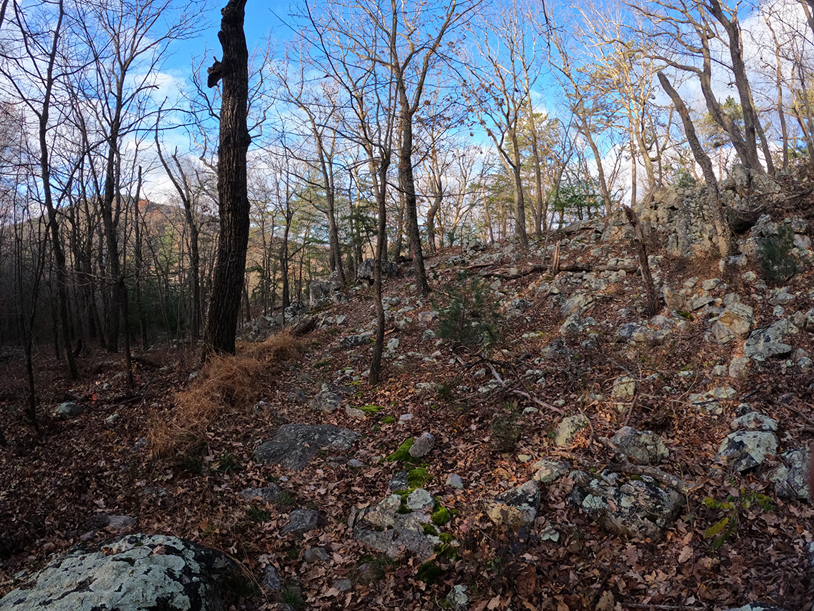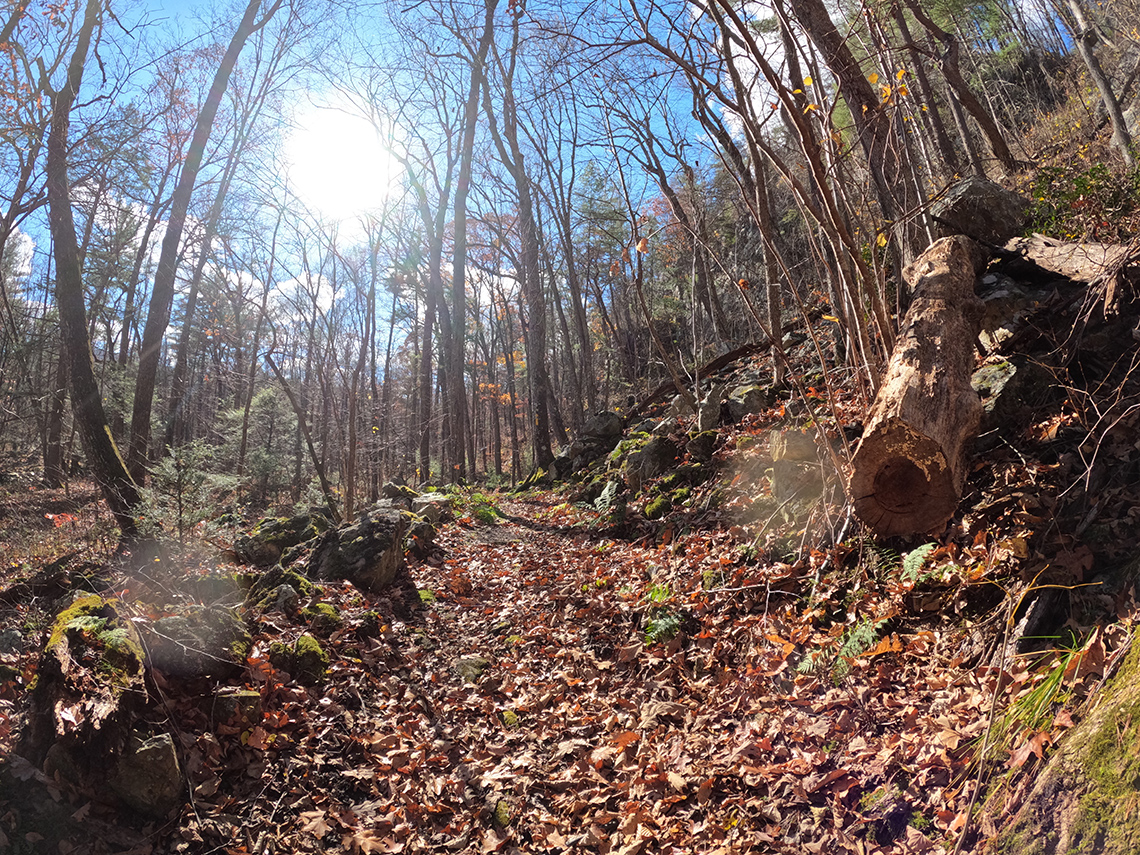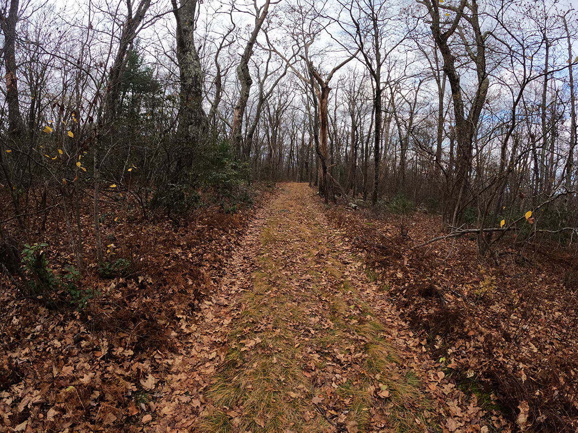The route along North Long Mountain Trail crossed over Trout Run Rd and then ducked into the woods, making its way south in the direction of Trout Pond Campground. This section of the trail had a fairly gentle uphill grade. The total gain for the day was 1,302 ft. but it didn't really feel like it because of how gradual the climb was. There were a few rolling sections but it was mostly pretty mellow and not very strenuous.