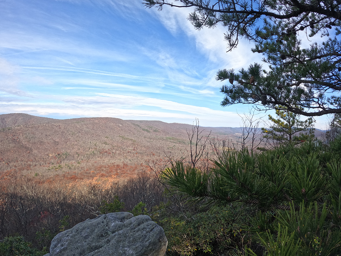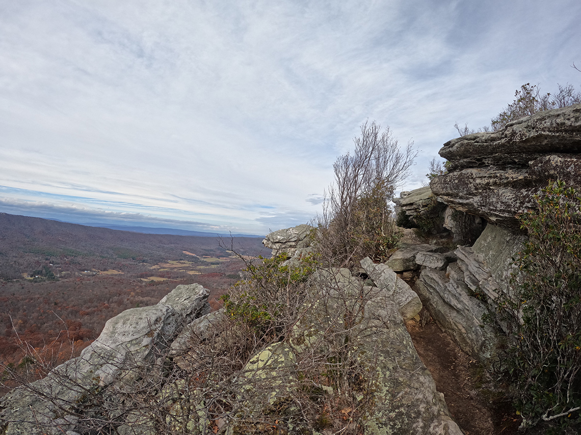 Also known as the Trout Run Valley Loop, this circuit of trails winds its way around a valley situated along the border of West Virginia and Virginia in the George Washington National Forest. There are several ways in which this route can be completed but my buddy Chris and I chose to do it in 3 days/2 nights starting at the Bucktail Trail trailhead at the northern end of the loop, hiking it counterclockwise. Another approach is to start at Wolf Gap trailhead on the southern end but more on our decision to hike it from the north later. Overall, it was a very rewarding hike and we were treated to beautiful fall foliage, just past peak color, and stunning views from the summits of Big Schloss and Tibbett Knob.