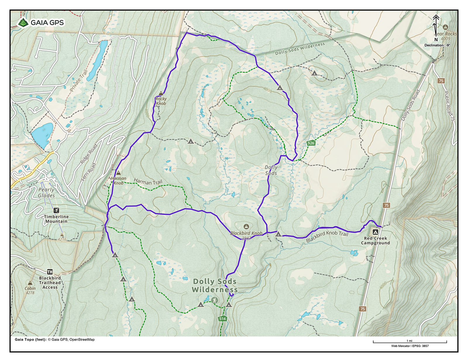 There are many configurations of trails that can be combined for loops or out-and-backs. For this adventure, we elected to hike a loop that wraps around the northern part of the plateau near Blackbird Knob and Upper Red Creek. Here is an overview of our plan.