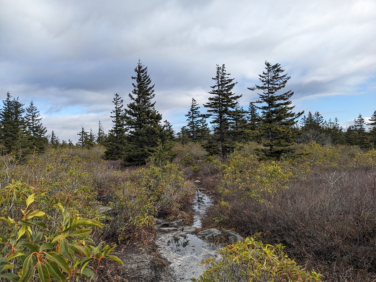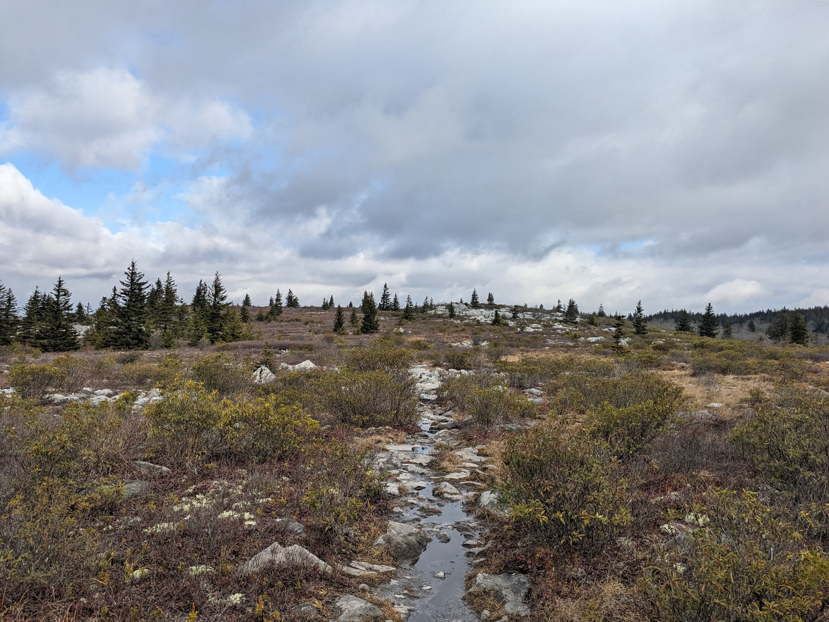 Every time I have visited Dolly Sods I have had to contend with constantly wet and muddy trail conditions. One way or another, my feet have always gotten wet (even when wearing nice waterproof boots... somehow the water is always deep enough to get over the Goretex membrane). And then there's the creek crossings with always variable water depth conditions. Sometimes there are enough exposed rocks to hop across but more often than not, my feet have inevitably gotten wet. Bringing extra socks is a must. Maybe even extra extra, as in 2 additional pairs than what would normally be packed.