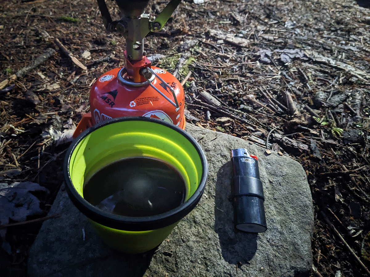 We began the day around 6:00 a.m. with some coffee and breakfast while we sat and enjoyed the sunrise. Seeing the warm glow of the sun after the previous day's dreariness was a welcomed sight. We didn't have a super long distance to cover on day 2 so we took our time, enjoying several cups of coffee and each other's company while we talked about life, backpacking gear, and brainstormed ideas for new products like DIY ultralight camp shoes.