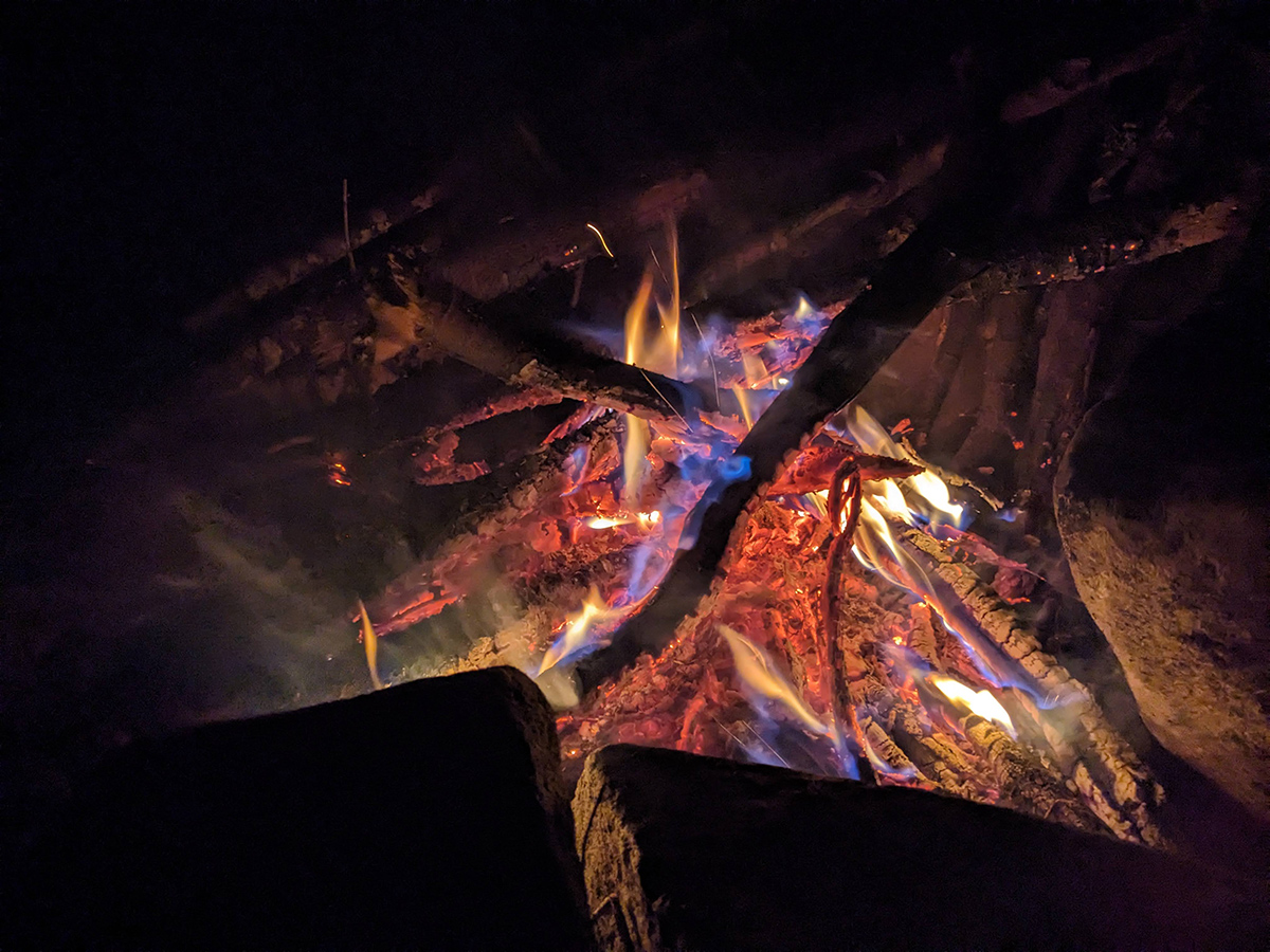 We set up camp, gathered fire wood, explored the area and found some other amazing campsites that we'd definitely try to remember for next time. The rest of the evening was spent drying out our wet shoes/feet, eating dinner, and enjoying the warm campfire. Day 2 complete!